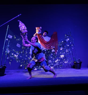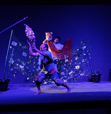 I Killed my Mother / It Wasn't my Fault propelled my directing career, leading to subsequent works. My second play Jungle Nama (2024) — an adaptation of Amitav Ghosh's graphic novel — is a folk thriller for children that uses puppetry, physical theatre, and elements from object theatre. In 2024, I also co-directed Stef Smith's Remote for Connections - Year 3, a youth theatre festival created by the National Centre for the Performing Arts in conjunction with the National Theatre, UK. 2025 began with directing Loka by Nayantara Nayar for Naatak Express — a 24 hour play-making challenge — where I was the youngest among 12 directors selected. In May 2025, I directed a staged reading of Rajiv Joseph's Animals Out Of Paper for Bhasha Centre's Hear, Here series of readings for the public.