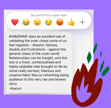 "Shah writes with empathy and humour; directing her first play, she reaches across to her audience of mostly young people who surely hear and perhaps relate to the woman's minor traumas ... Hopefully Mallika Shah will write more plays—Gen Z could do with some astute representation. Films and serials are still trying to make sense of Millennials."